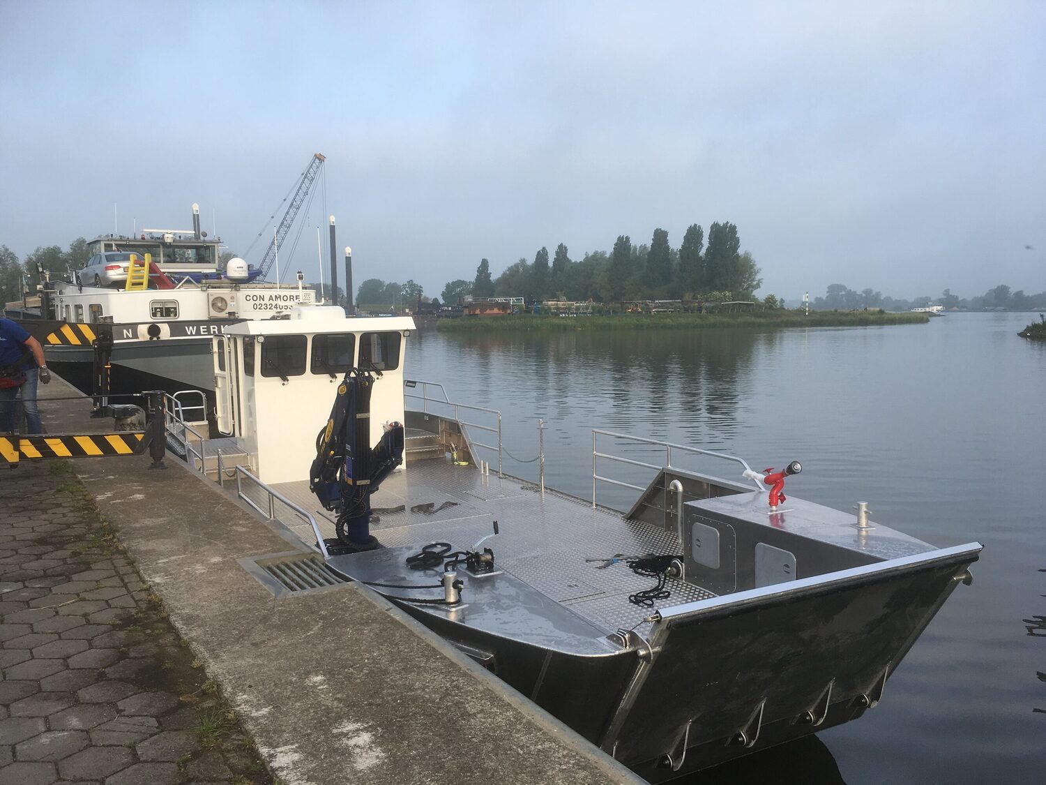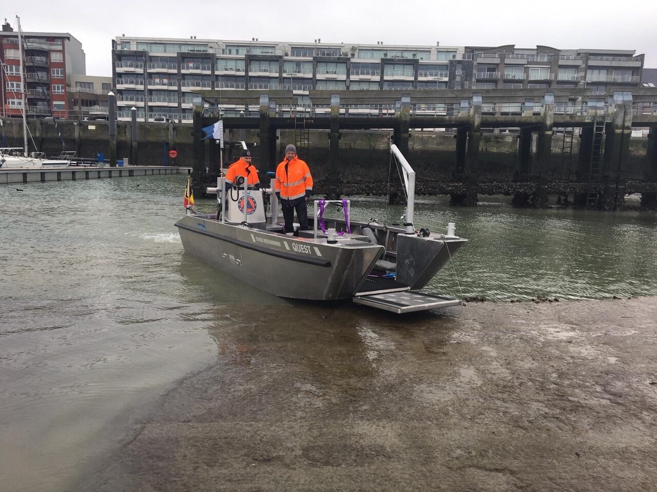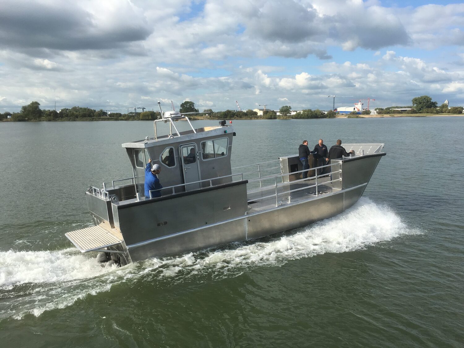 The OrangePit landing crafts are the result of our successful partnership with the Dutch Alunautic boats. Our aluminium Landingcraft models have the possibilities to work in nearshore conditions and shallow waters. Its draught is approximately one meter and, fully loaded, it can reach speeds of 20 knots and above, depending on water conditions and load on board. Crew, passengers, and load can be moved rapidly to your project, dredger, or station. A hydraulic loading ramp in the front, a hydraulic winch, and hydraulic cranes make this fast and sturdy boat a reliable multi-transport vessel for your project.